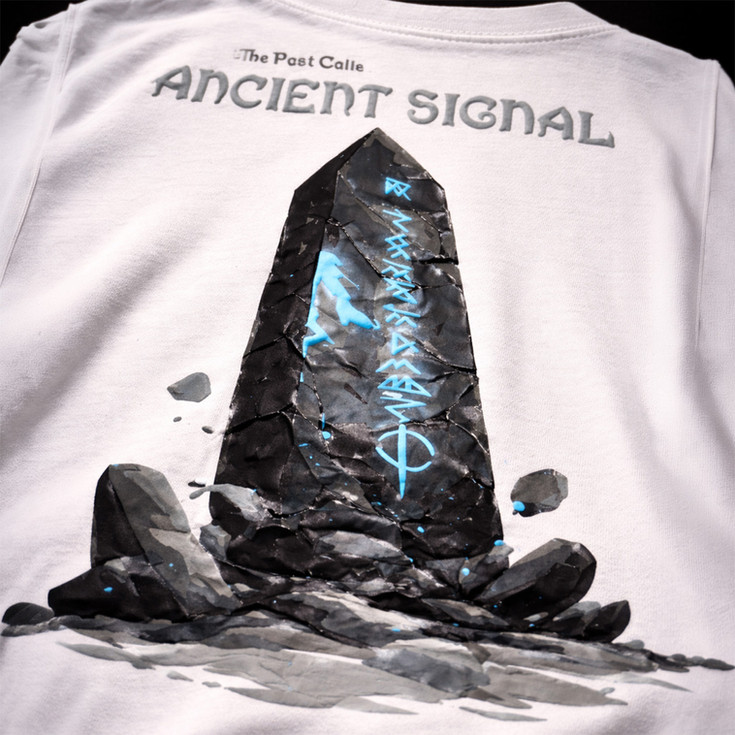 Ancient Signal draws inspiration from forgotten symbols and timeless messages. Featuring a detailed monolith artwork with symbolic elements, this oversized tee merges mythology-inspired design with modern streetwear structure.